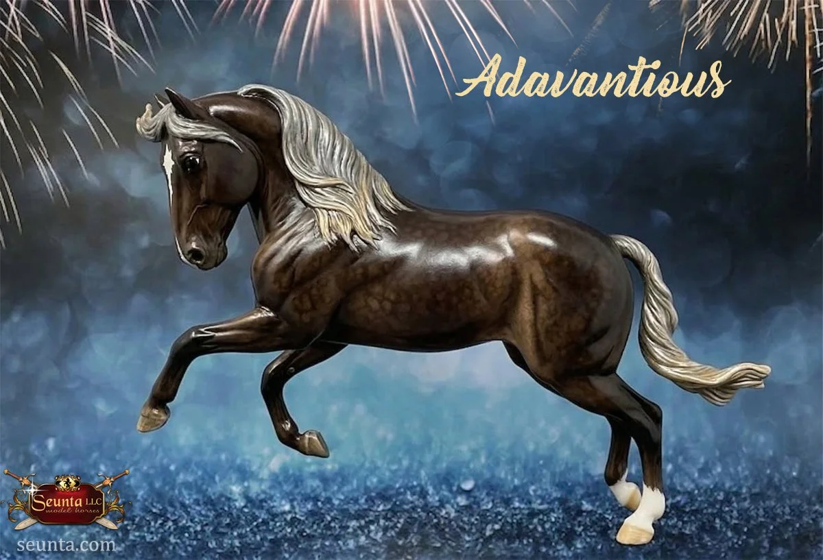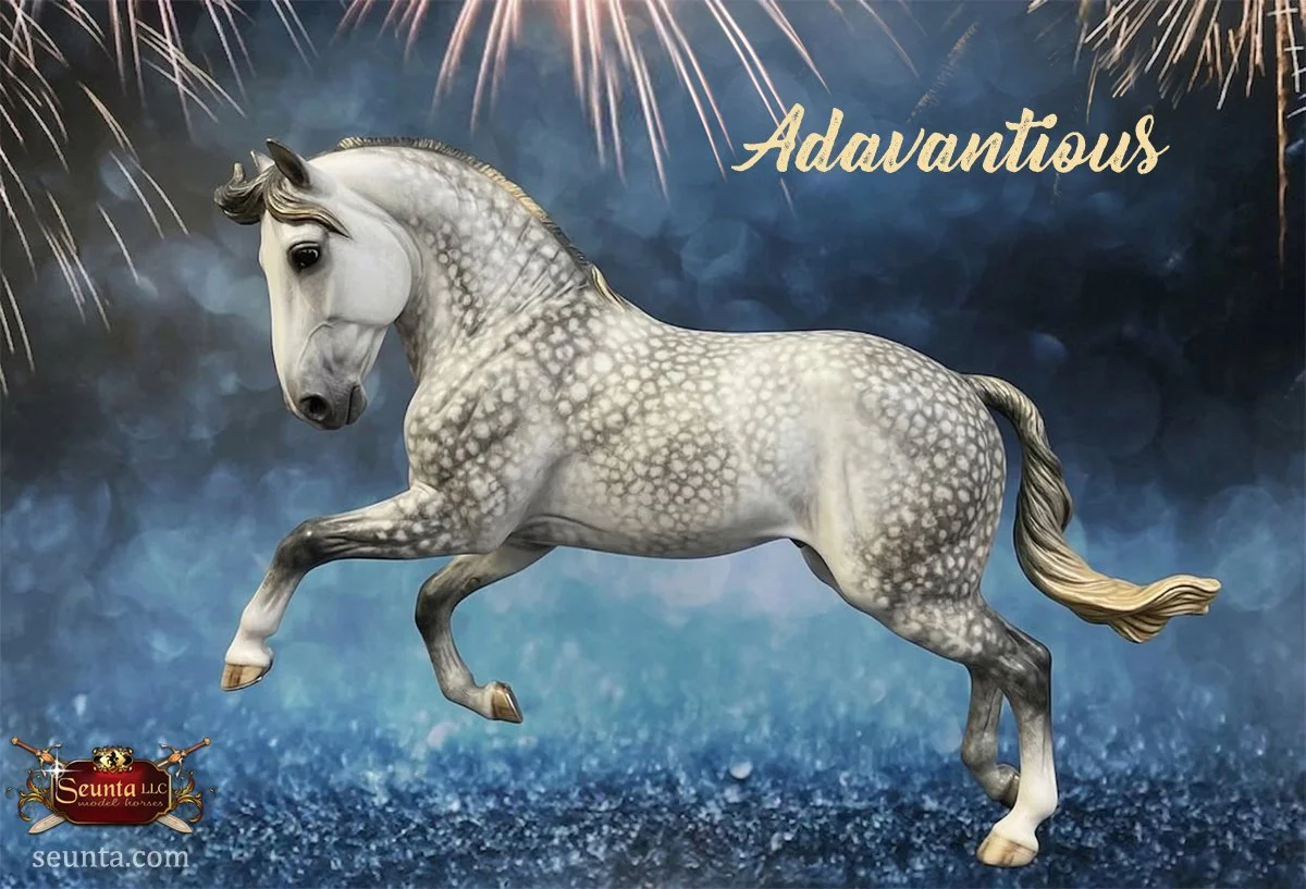 His beautifully sculpted neck is muscular and gracefully arched. This mirrors the proud, high carriage of real Andalusians, giving the model an air of regality. Tibbi included many fine details such as veining, lip wrinkles, whisker bumps, and eye lashes. His style is further enhanced by a braided mane and tail.